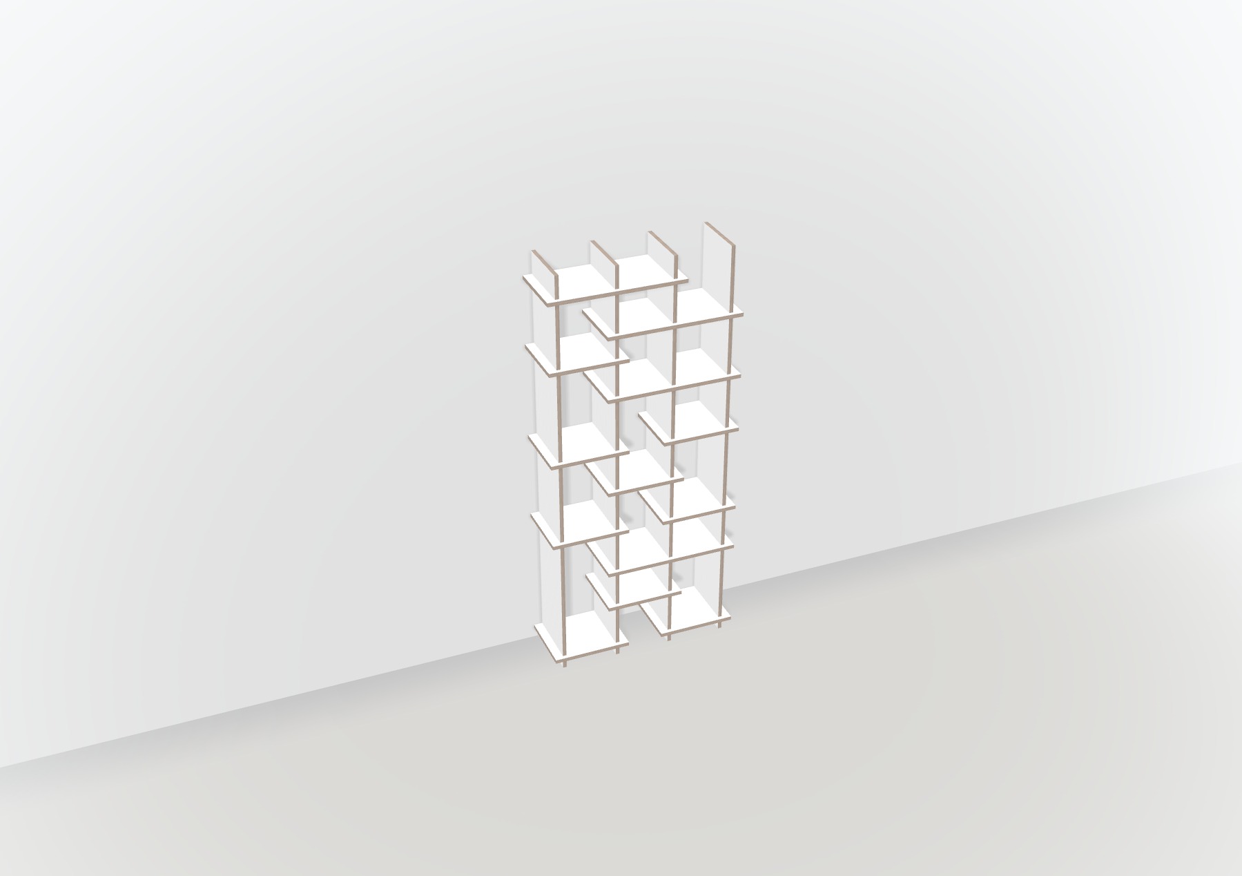 Du bestimmst selbst Höhe, Länge und Breite deines Regals online im 3D-Regal-Konfigurator. Die Maße lassen sich zentimetergenau an deine Raumsituation anpassen. Unser Designer-Team kann auf Anfrage sogar eine millimetergenaue Planung vornehmen. Über die Anzahl und das Verschieben der Bretter sowie das Entfernen von Teilstücken, kannst du den Aufbau der Fächer deines Möbels individualisieren.