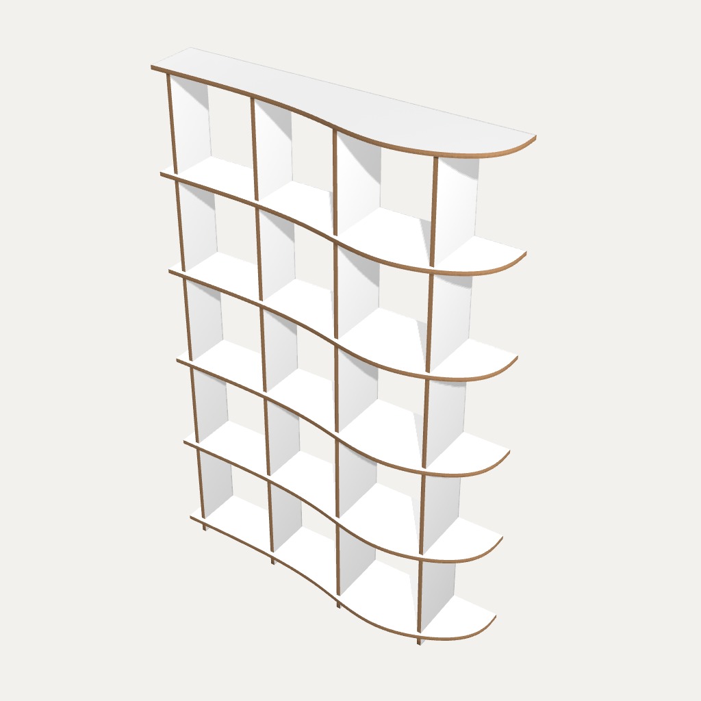 Durch die Möglichkeit der Verschiebung von Böden und Wänden, kannst du dein Design noch individueller gestalten. So finden auch garantiert alle deine Bücher und Lieblingsgegenstände einen passenden Platz in deinem kreativen Regalunikat. Gleichzeitig kann es aber auch als künstlerisches Stilmittel dienen, um den Schwung deines Möbels zu unterstreichen.