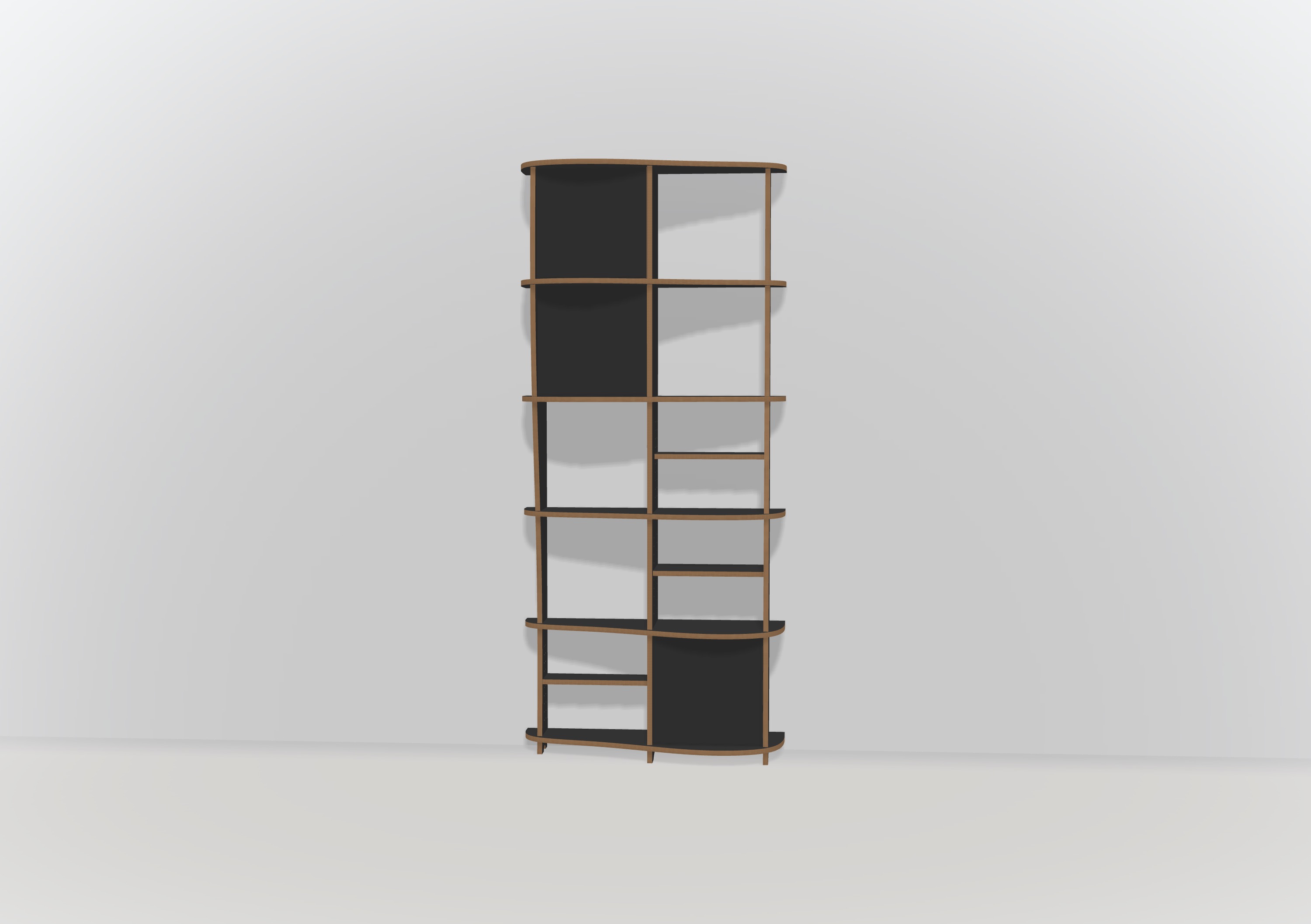 Durch die Möglichkeit der Verschiebung von Böden und Wänden, kannst du dein Design noch individueller gestalten. So finden auch garantiert alle deine Bücher und Lieblingsgegenstände einen passenden Platz in deinem kreativen Regalunikat. Gleichzeitig kann es aber auch als künstlerisches Stilmittel dienen, um den Schwung deines Möbels zu unterstreichen.