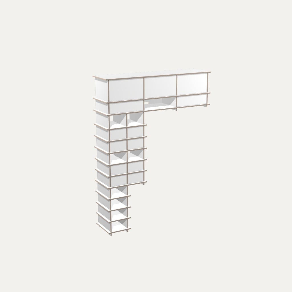 Durch die Möglichkeit der Verschiebung von Böden und Wänden, kannst du dein Design noch individueller gestalten. So finden auch garantiert alle deine Bücher und Lieblingsgegenstände einen passenden Platz in deinem kreativen Regalunikat. Gleichzeitig kann es aber auch als künstlerisches Stilmittel dienen, um den Schwung deines Möbels zu unterstreichen.