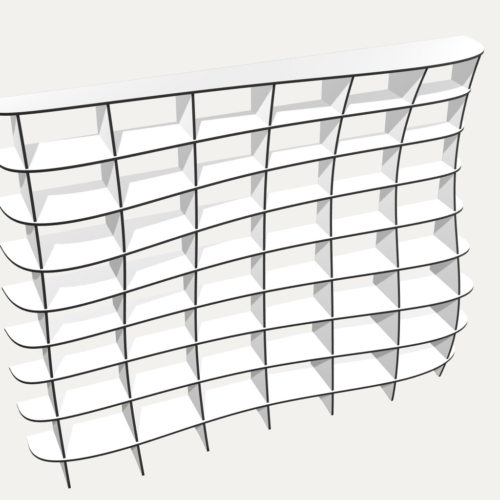 Durch die Möglichkeit der Verschiebung von Böden und Wänden, kannst du dein Design noch individueller gestalten. So finden auch garantiert alle deine Bücher und Lieblingsgegenstände einen passenden Platz in deinem kreativen Regalunikat. Gleichzeitig kann es aber auch als künstlerisches Stilmittel dienen, um den Schwung deines Möbels zu unterstreichen.