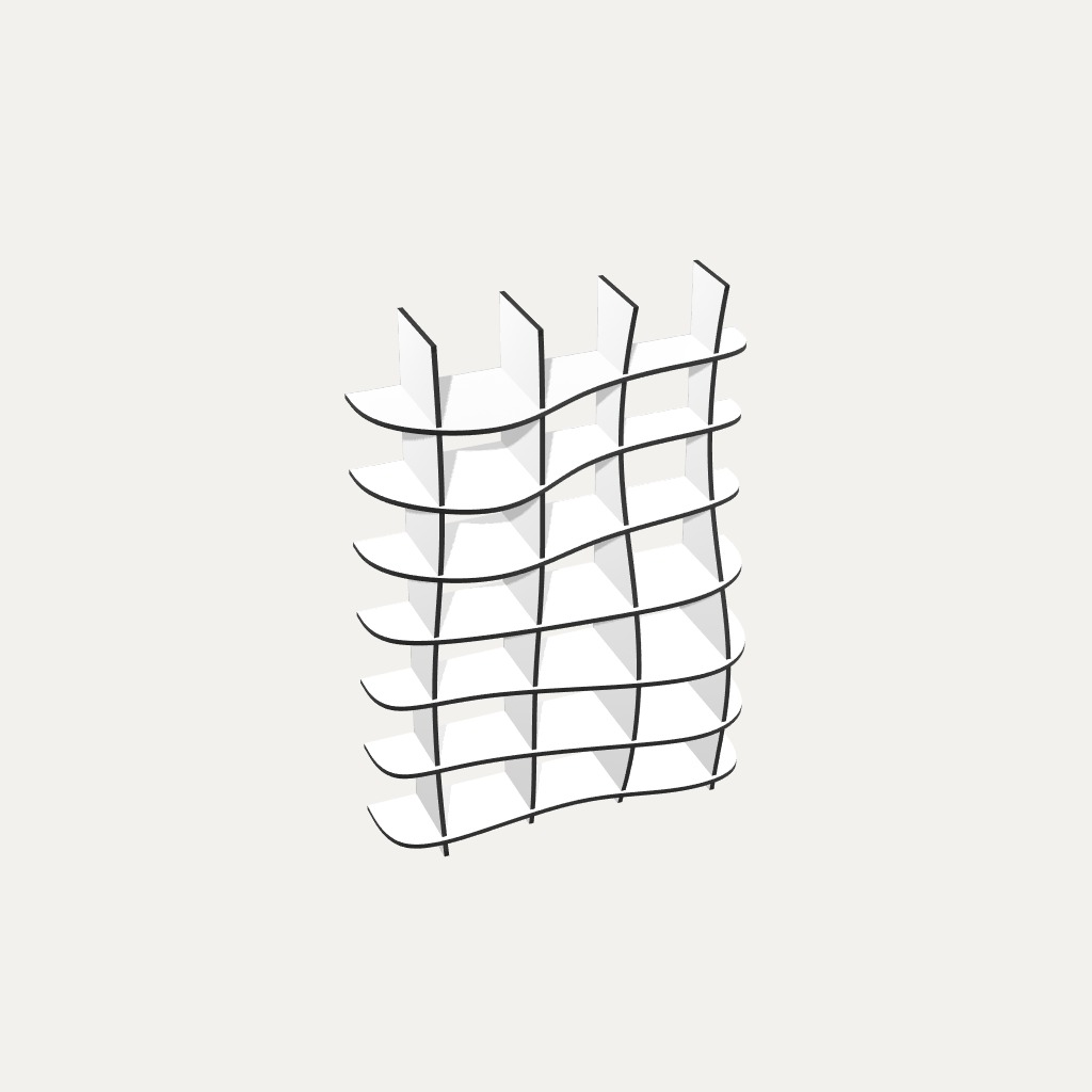 Durch die Möglichkeit der Verschiebung von Böden und Wänden, kannst du dein Design noch individueller gestalten. So finden auch garantiert alle deine Bücher und Lieblingsgegenstände einen passenden Platz in deinem kreativen Regalunikat. Gleichzeitig kann es aber auch als künstlerisches Stilmittel dienen, um den Schwung deines Möbels zu unterstreichen.