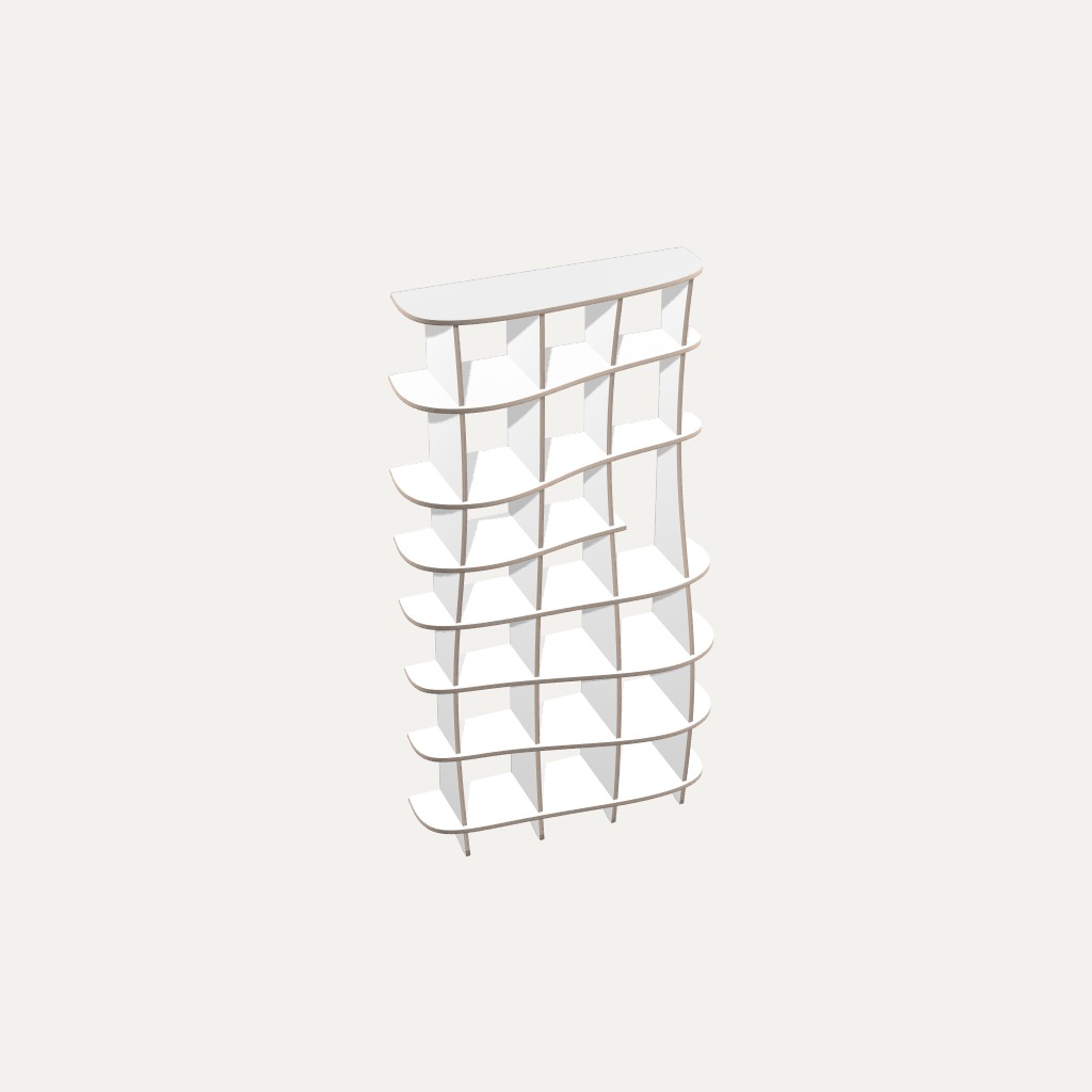 Durch die Möglichkeit der Verschiebung von Böden und Wänden, kannst du dein Design noch individueller gestalten. So finden auch garantiert alle deine Bücher und Lieblingsgegenstände einen passenden Platz in deinem kreativen Regalunikat. Gleichzeitig kann es aber auch als künstlerisches Stilmittel dienen, um den Schwung deines Möbels zu unterstreichen.