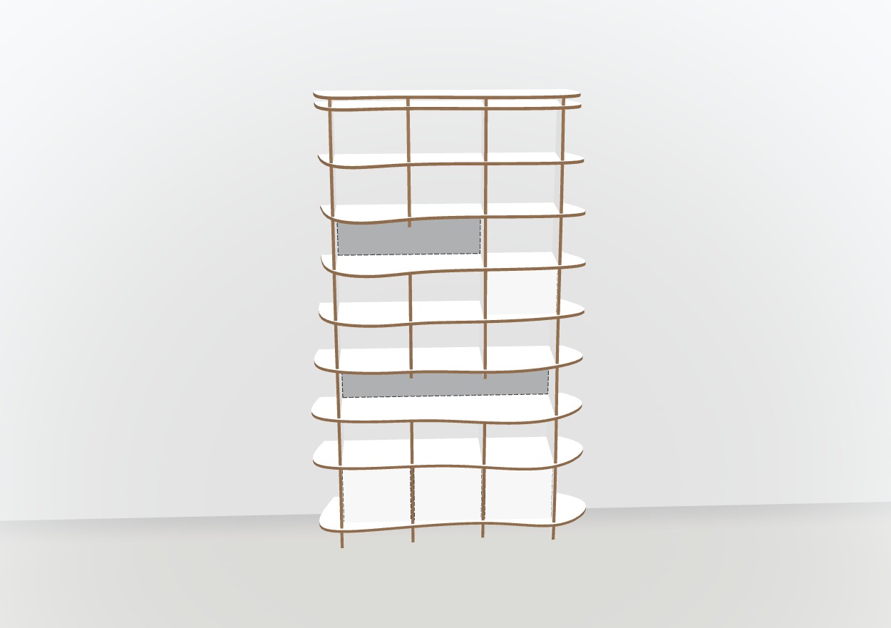 Durch die Möglichkeit der Verschiebung von Böden und Wänden, kannst du dein Design noch individueller gestalten. So finden auch garantiert alle deine Bücher und Lieblingsgegenstände einen passenden Platz in deinem kreativen Regalunikat. Gleichzeitig kann es aber auch als künstlerisches Stilmittel dienen, um den Schwung deines Möbels zu unterstreichen.