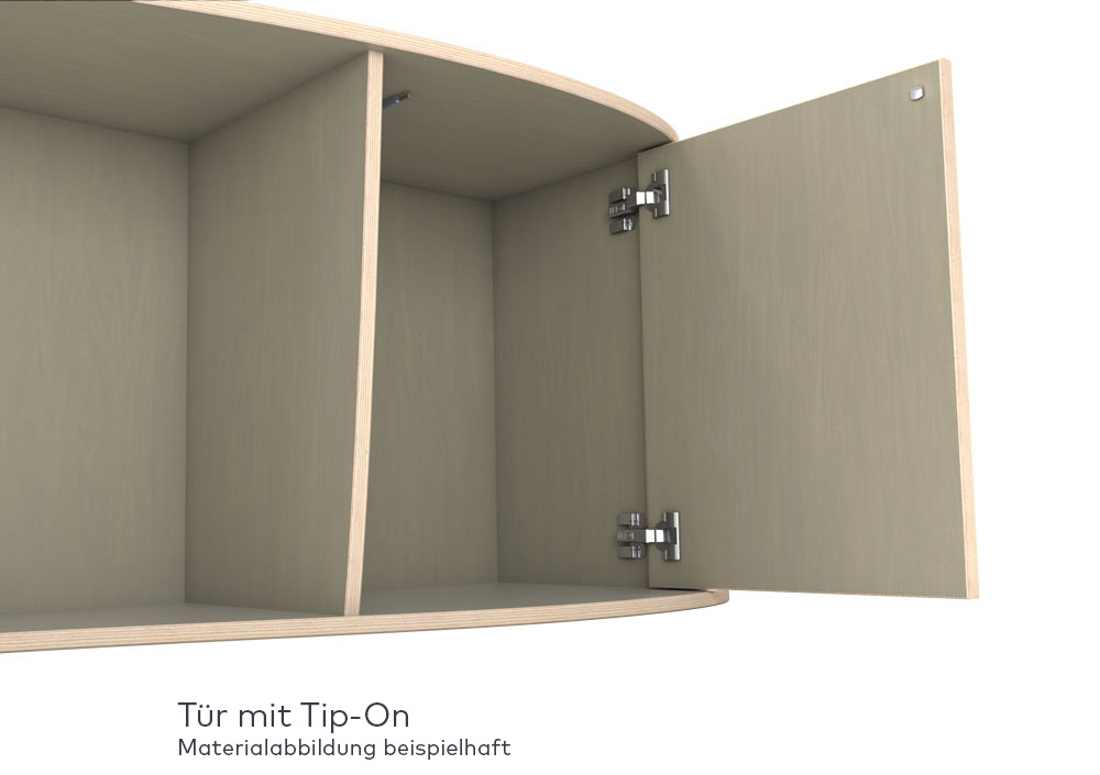 Wähle aus vier Fronten-Typen aus, um geschlossene Fächer zu konfigurieren. Unsere Türen, Klappen und Schubladen sind allesamt mit Tip-On- bzw. Push-to-Open-Beschlägen versehen, sodass ein leichter Fingerdruck reicht, um die Fronten zu öffnen - ganz ohne Griff oder Handeinlass. Die Sekretärklappe stellt dabei einen besonderen Fronten-Typ dar, denn ihre Funktion beschränkt sich nicht auf das Schließen eines Fachs, sondern dient als aufklappbare Schreibtischplatte oder auch Bar.