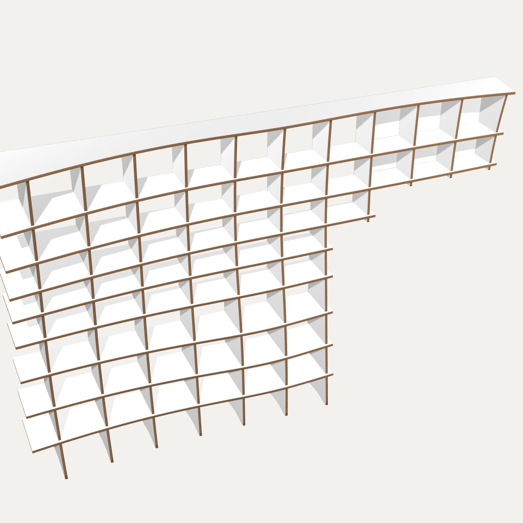 Durch die Möglichkeit der Verschiebung von Böden und Wänden, kannst du dein Design noch individueller gestalten. So finden auch garantiert alle deine Bücher und Lieblingsgegenstände einen passenden Platz in deinem kreativen Regalunikat. Gleichzeitig kann es aber auch als künstlerisches Stilmittel dienen, um den Schwung deines Möbels zu unterstreichen.
