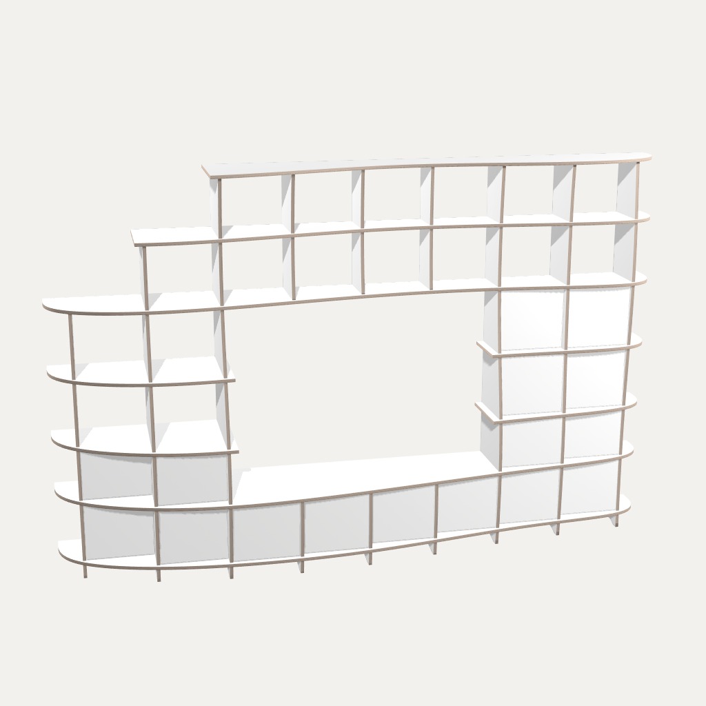 Durch die Möglichkeit der Verschiebung von Böden und Wänden, kannst du dein Design noch individueller gestalten. So finden auch garantiert alle deine Bücher und Lieblingsgegenstände einen passenden Platz in deinem kreativen Regalunikat. Gleichzeitig kann es aber auch als künstlerisches Stilmittel dienen, um den Schwung deines Möbels zu unterstreichen.