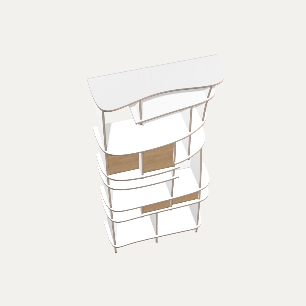 Durch die Möglichkeit der Verschiebung von Böden und Wänden, kannst du dein Design noch individueller gestalten. So finden auch garantiert alle deine Bücher und Lieblingsgegenstände einen passenden Platz in deinem kreativen Regalunikat. Gleichzeitig kann es aber auch als künstlerisches Stilmittel dienen, um den Schwung deines Möbels zu unterstreichen.