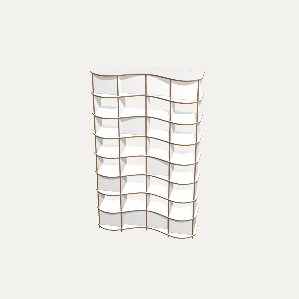 Durch die Möglichkeit der Verschiebung von Böden und Wänden, kannst du dein Design noch individueller gestalten. So finden auch garantiert alle deine Bücher und Lieblingsgegenstände einen passenden Platz in deinem kreativen Regalunikat. Gleichzeitig kann es aber auch als künstlerisches Stilmittel dienen, um den Schwung deines Möbels zu unterstreichen.