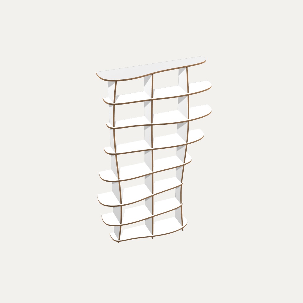 Durch die Möglichkeit der Verschiebung von Böden und Wänden, kannst du dein Design noch individueller gestalten. So finden auch garantiert alle deine Bücher und Lieblingsgegenstände einen passenden Platz in deinem kreativen Regalunikat. Gleichzeitig kann es aber auch als künstlerisches Stilmittel dienen, um den Schwung deines Möbels zu unterstreichen.