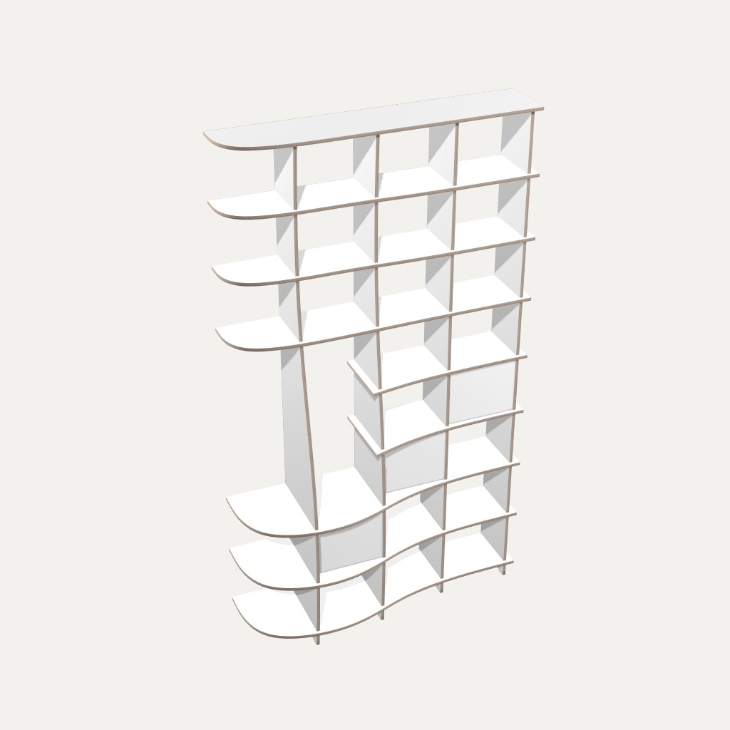 Durch die Möglichkeit der Verschiebung von Böden und Wänden, kannst du dein Design noch individueller gestalten. So finden auch garantiert alle deine Bücher und Lieblingsgegenstände einen passenden Platz in deinem kreativen Regalunikat. Gleichzeitig kann es aber auch als künstlerisches Stilmittel dienen, um den Schwung deines Möbels zu unterstreichen.