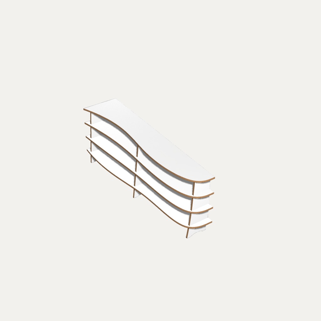 Durch die Möglichkeit der Verschiebung von Böden und Wänden, kannst du dein Design noch individueller gestalten. So finden auch garantiert alle deine Bücher und Lieblingsgegenstände einen passenden Platz in deinem kreativen Regalunikat. Gleichzeitig kann es aber auch als künstlerisches Stilmittel dienen, um den Schwung deines Möbels zu unterstreichen.