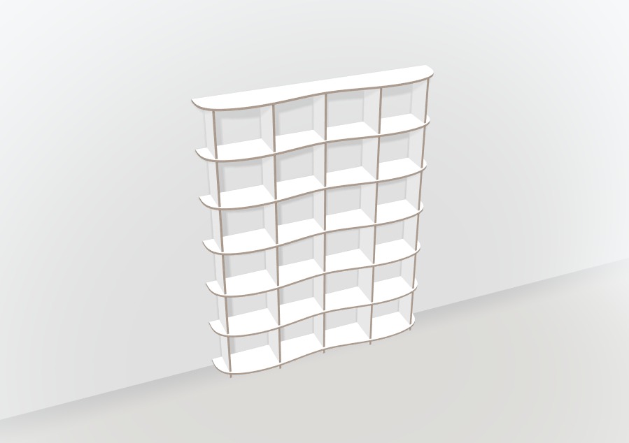 Durch die Möglichkeit der Verschiebung von Böden und Wänden, kannst du dein Design noch individueller gestalten. So finden auch garantiert alle deine Bücher und Lieblingsgegenstände einen passenden Platz in deinem kreativen Regalunikat. Gleichzeitig kann es aber auch als künstlerisches Stilmittel dienen, um den Schwung deines Möbels zu unterstreichen.