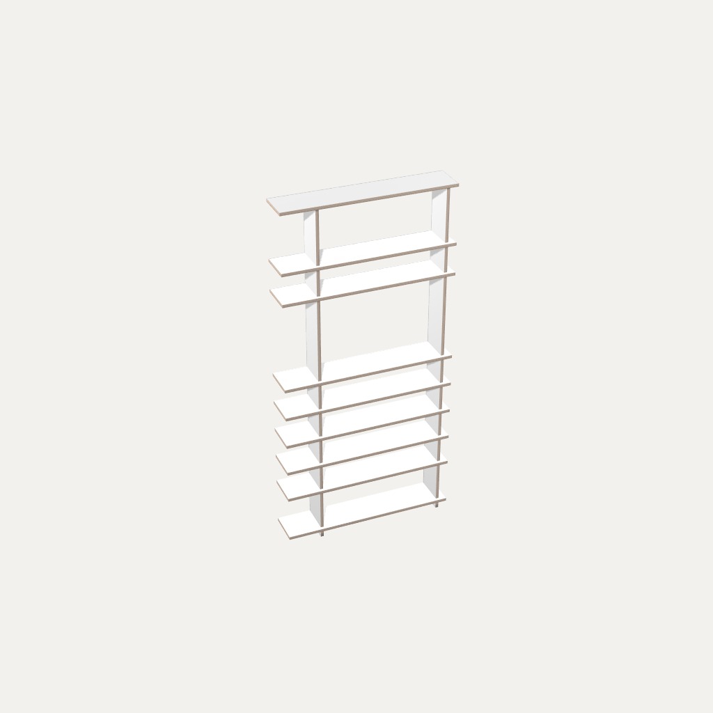 Du bestimmst selbst Höhe, Länge und Breite deines Regals online im 3D-Regal-Konfigurator. Die Maße lassen sich zentimetergenau an deine Raumsituation anpassen. Unser Designer-Team kann auf Anfrage sogar eine millimetergenaue Planung vornehmen. Über die Anzahl und das Verschieben der Bretter sowie das Entfernen von Teilstücken, kannst du den Aufbau der Fächer deines Möbels individualisieren.
