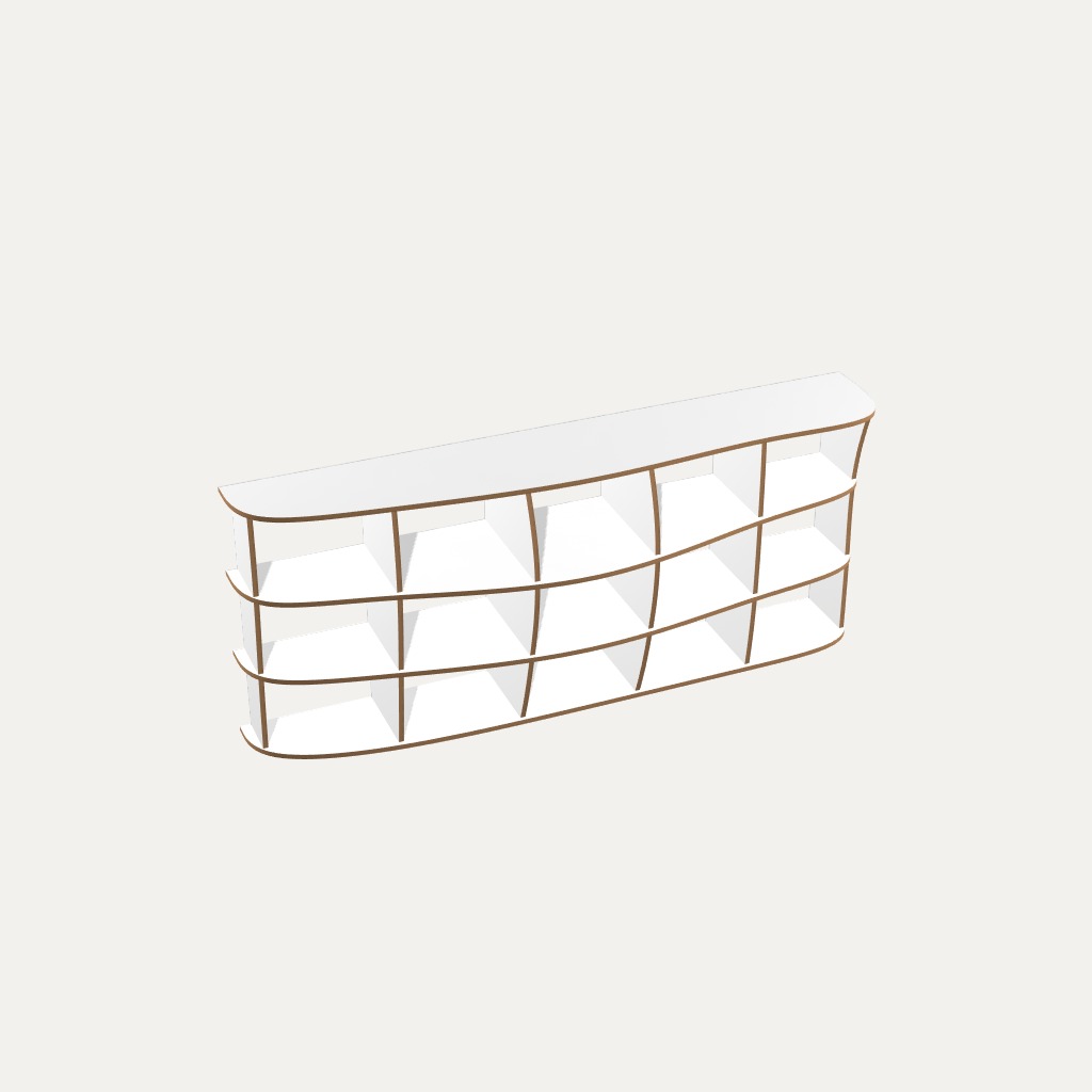 Durch die Möglichkeit der Verschiebung von Böden und Wänden, kannst du dein Design noch individueller gestalten. So finden auch garantiert alle deine Bücher und Lieblingsgegenstände einen passenden Platz in deinem kreativen Regalunikat. Gleichzeitig kann es aber auch als künstlerisches Stilmittel dienen, um den Schwung deines Möbels zu unterstreichen.