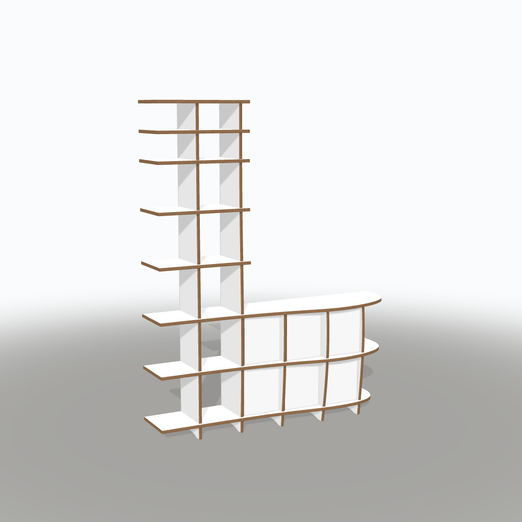 Durch die Möglichkeit der Verschiebung von Böden und Wänden, kannst du dein Design noch individueller gestalten. So finden auch garantiert alle deine Bücher und Lieblingsgegenstände einen passenden Platz in deinem kreativen Regalunikat. Gleichzeitig kann es aber auch als künstlerisches Stilmittel dienen, um den Schwung deines Möbels zu unterstreichen.