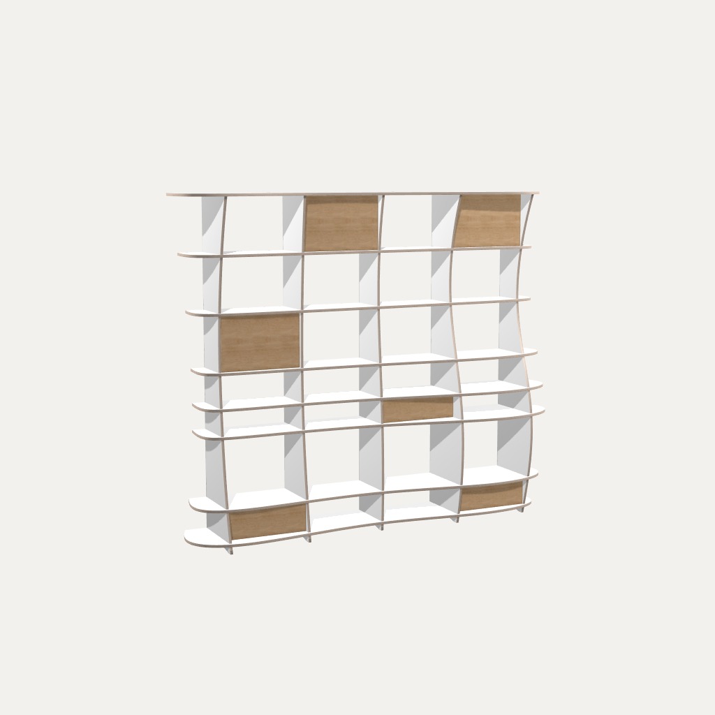 Durch die Möglichkeit der Verschiebung von Böden und Wänden, kannst du dein Design noch individueller gestalten. So finden auch garantiert alle deine Bücher und Lieblingsgegenstände einen passenden Platz in deinem kreativen Regalunikat. Gleichzeitig kann es aber auch als künstlerisches Stilmittel dienen, um den Schwung deines Möbels zu unterstreichen.