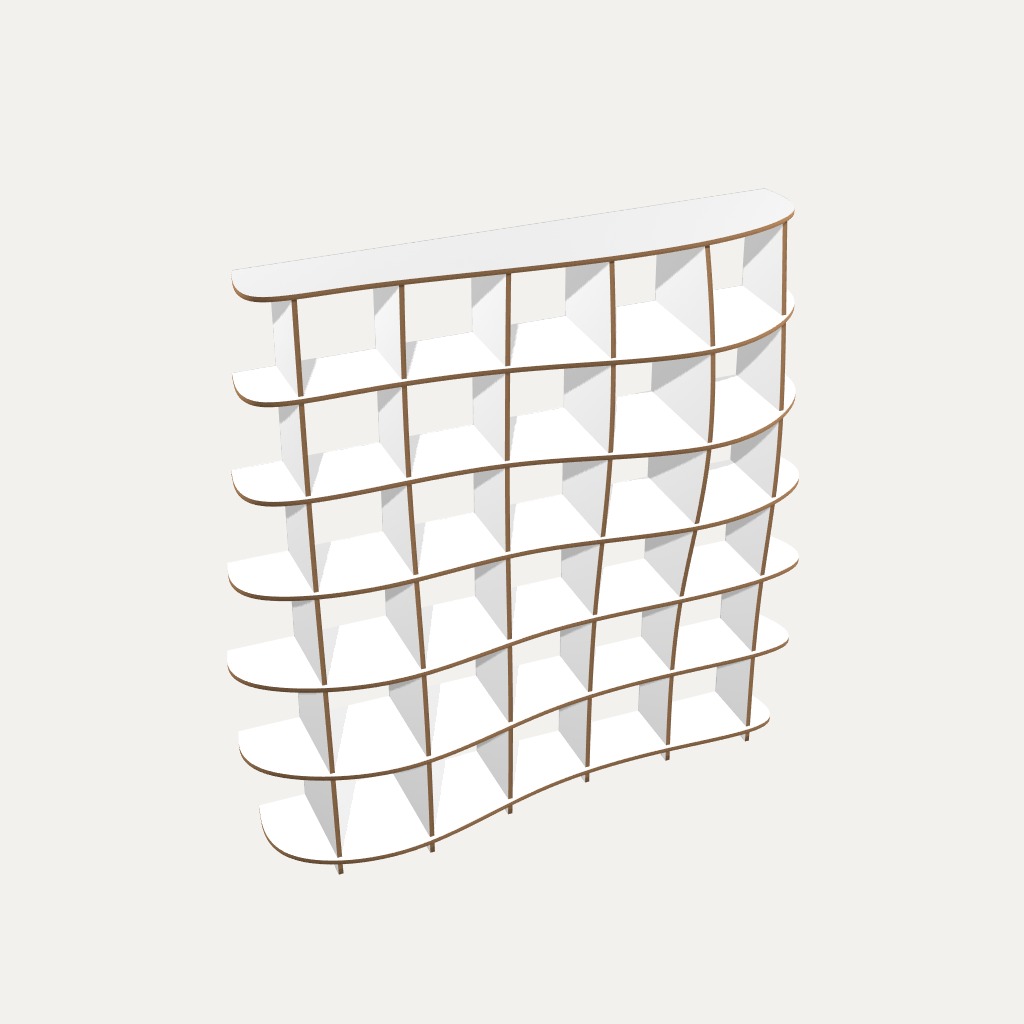 Durch die Möglichkeit der Verschiebung von Böden und Wänden, kannst du dein Design noch individueller gestalten. So finden auch garantiert alle deine Bücher und Lieblingsgegenstände einen passenden Platz in deinem kreativen Regalunikat. Gleichzeitig kann es aber auch als künstlerisches Stilmittel dienen, um den Schwung deines Möbels zu unterstreichen.