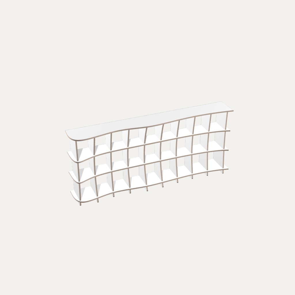 Durch die Möglichkeit der Verschiebung von Böden und Wänden, kannst du dein Design noch individueller gestalten. So finden auch garantiert alle deine Bücher und Lieblingsgegenstände einen passenden Platz in deinem kreativen Regalunikat. Gleichzeitig kann es aber auch als künstlerisches Stilmittel dienen, um den Schwung deines Möbels zu unterstreichen.